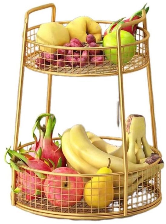 · Storage Capacity - Dual basket system provides generous storage space. The open wire design ensures plenty of ventilation for your fruits and veggies, great for always displaying & storing your fresh fruits handy. Ideal for holding everything from fruits, vegetables, bread and snacks to toys, cosmetics, and toiletries, suitable for various item sizes.