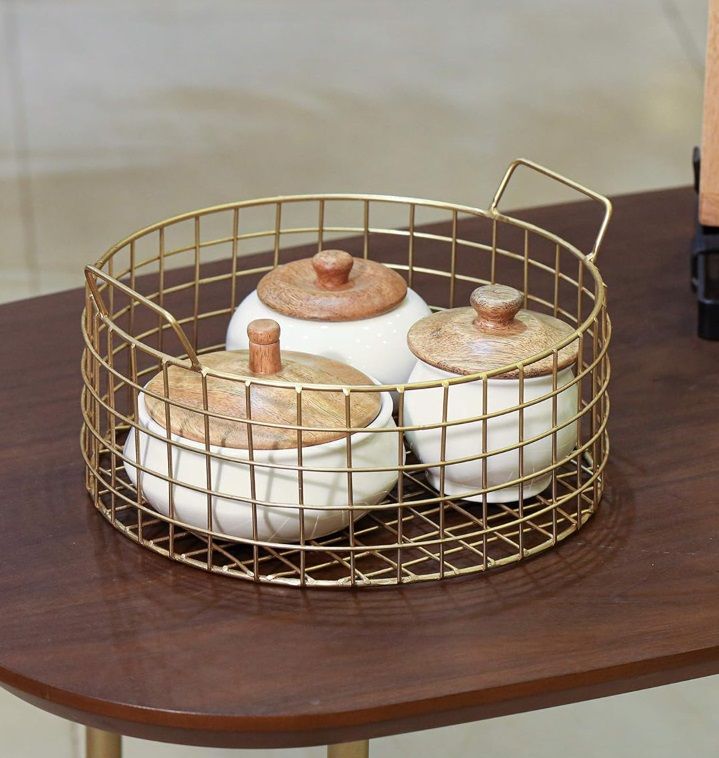 · Package Contents: 1-Piece Wire Gold finish Basket